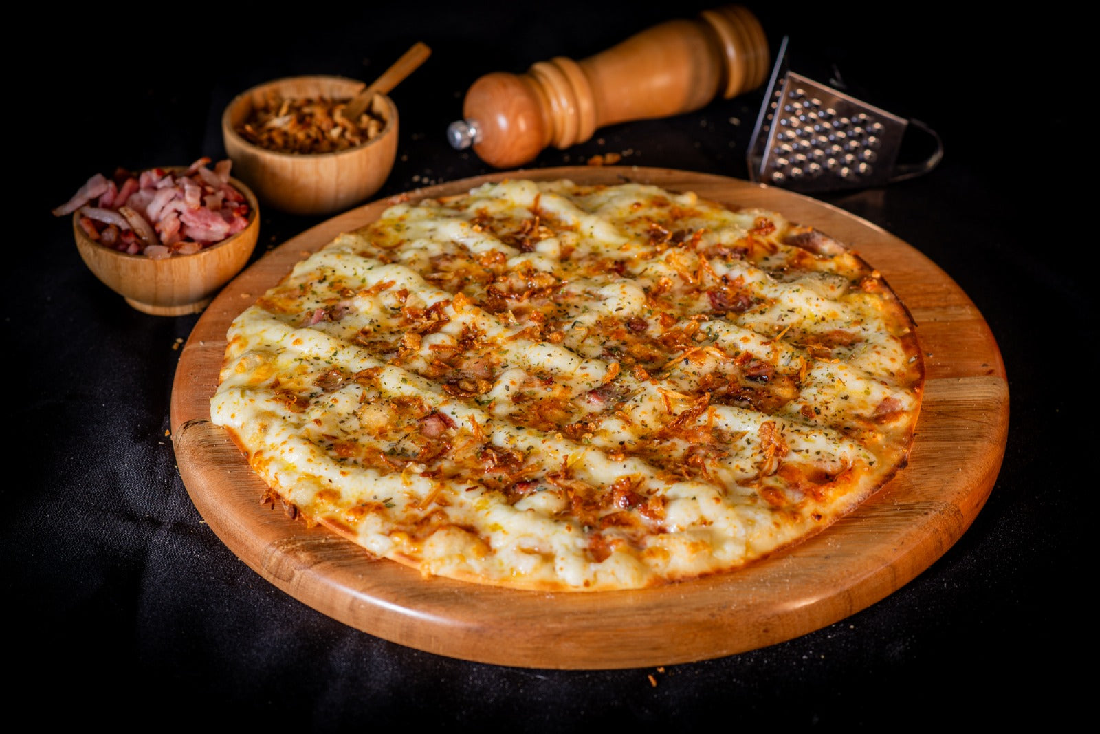Se crocância fosse música, essa pizza seria trio elétrico! Molho de tomate Mabbú, muçarela e uma chuva de bacon crocante que faz barulho só de pensar. Finalizada com orégano pra ficar na memória (e no coração).