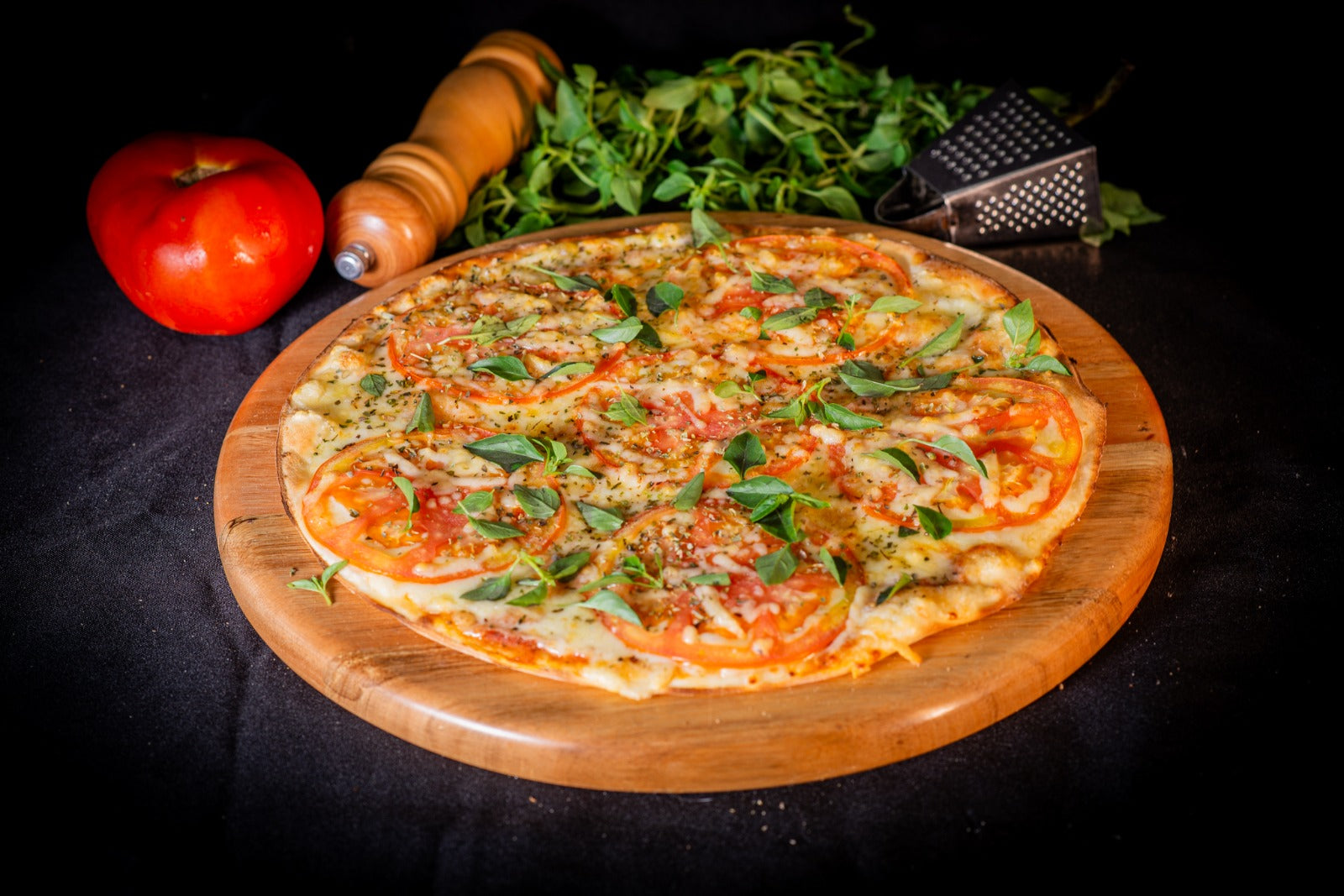 Elegante, leve, clássica. Molho de tomate Mabbú, muçarela, fatias de tomate e manjericão fresco que perfuma o ambiente antes mesmo da primeira mordida. Simples e inesquecível.